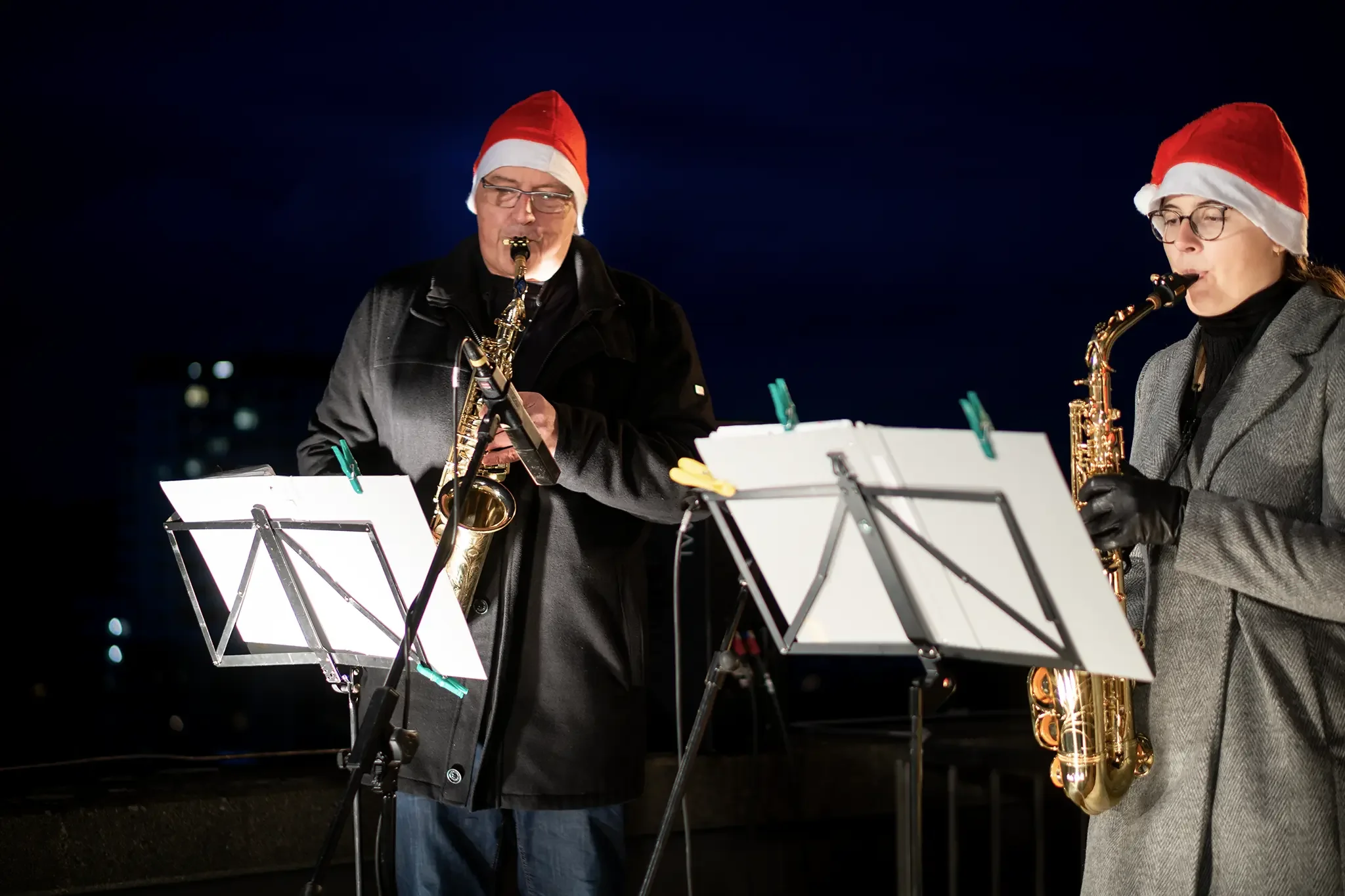 Über den Dächern Bergisch Gladbachs - Weihnachtskonzert auf einem Hochhaus