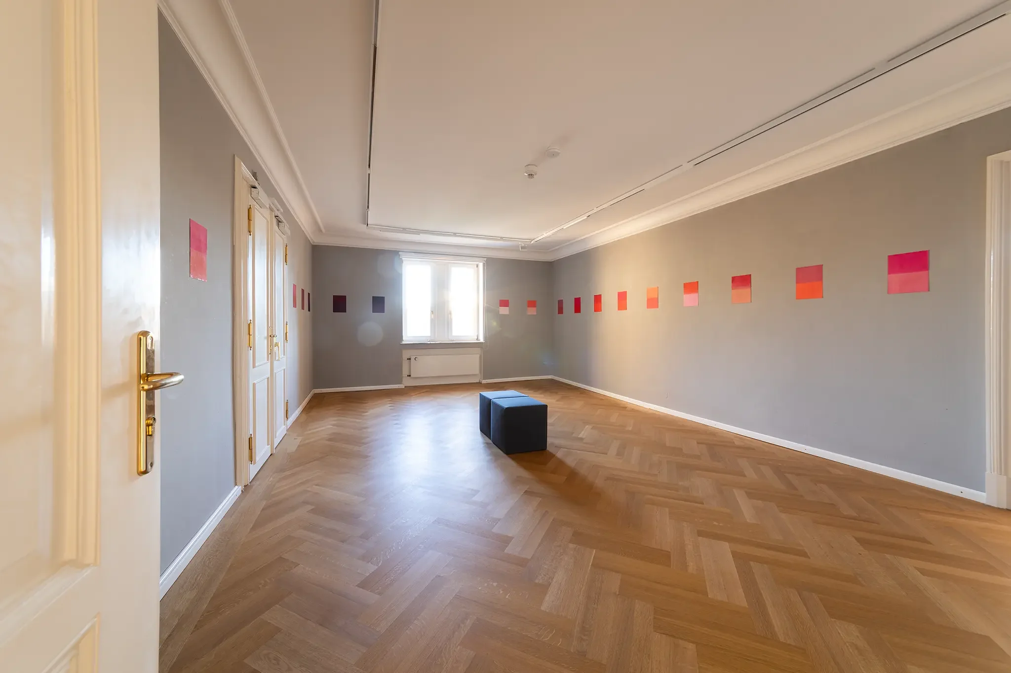 Allerdings haben wir hier keine 221 einzelnen Kunstwerke. Vielmehr werden die einzelnen Räume mit den jeweiligen Farbkonzepten und den sich im Laufe des Tages ändernden Lichtverhältnissen, zu Gesamtkunstwerken. Gersing spricht von "Raumkunst", während er für die einzelnen Räume eigene Namen entwirft. Und die Kuratorin, Dr. Oelschlägel spricht von einem "Kosmos an Farben".