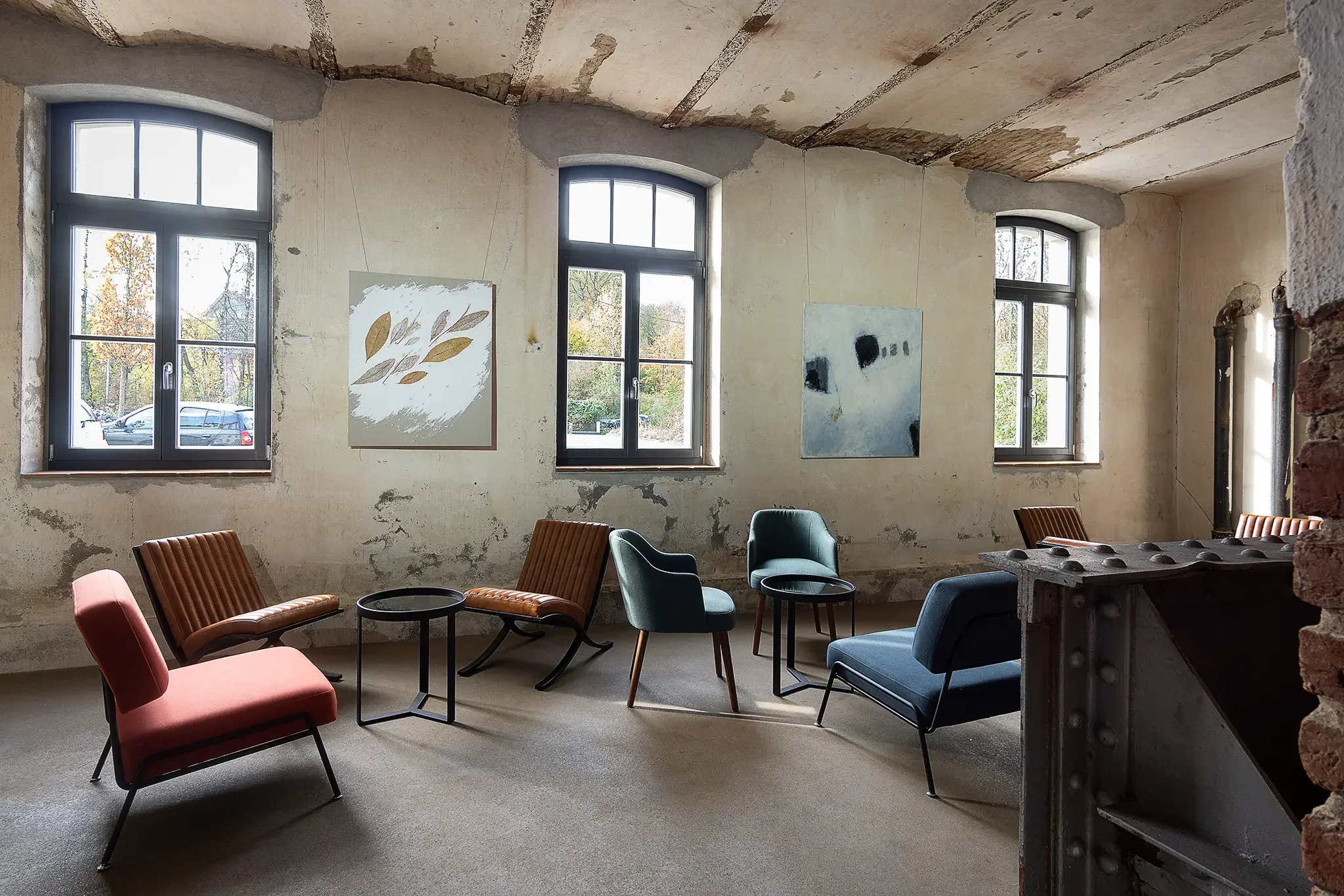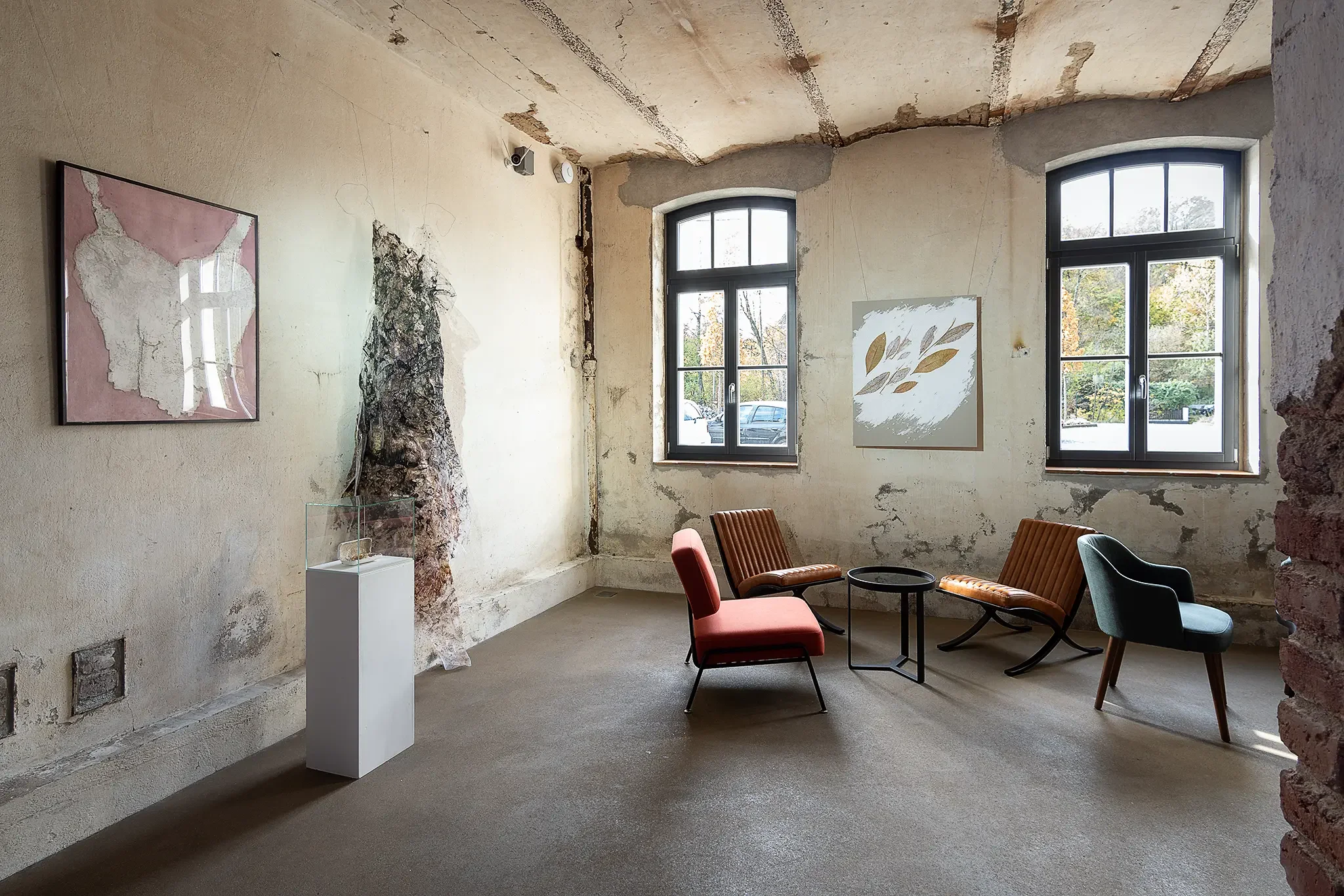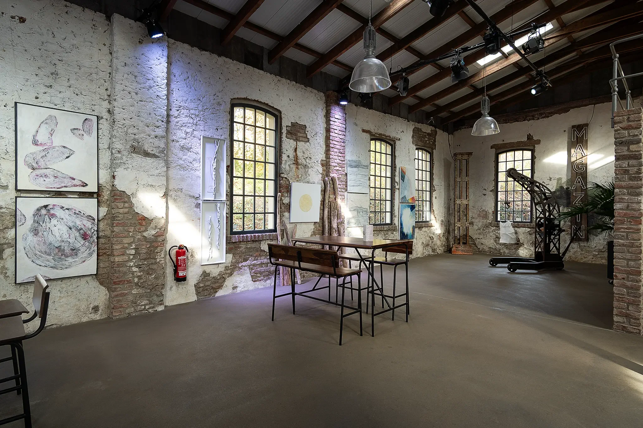 Gezeigt wurden Werke in unterschiedlichen Medien und Techniken, die die vielen Bedeutungen und Facetten dieser „unbunten“ Farbe ausloteten. Präsentiert wurde alles in den Räumen des Atelierhauses auf dem Gelände einer ehemaligen Erzgrube.