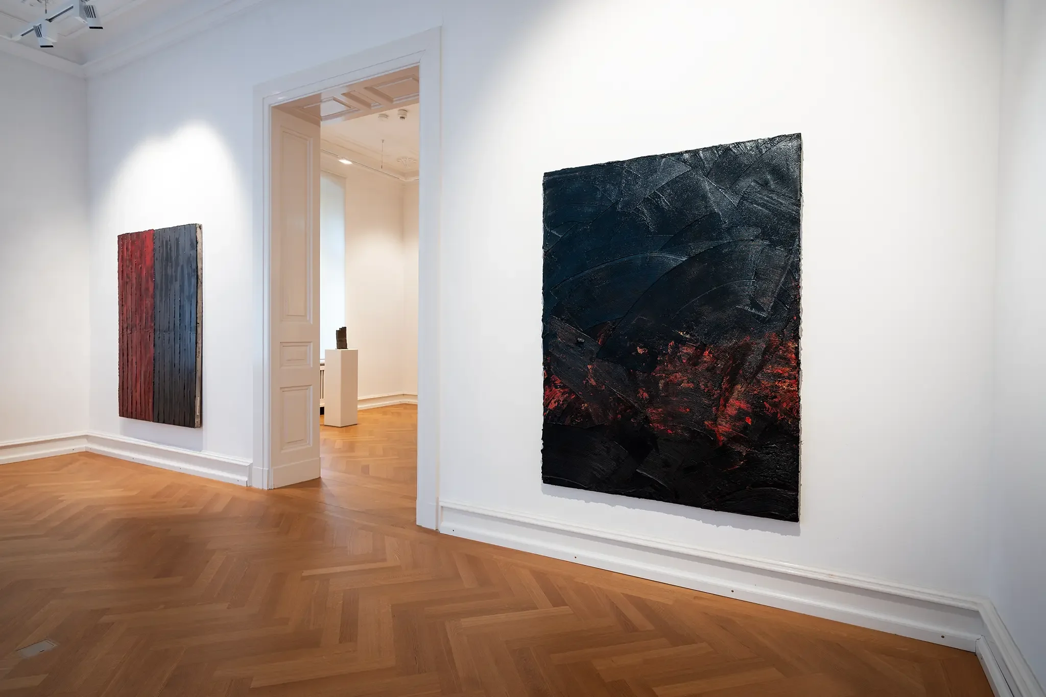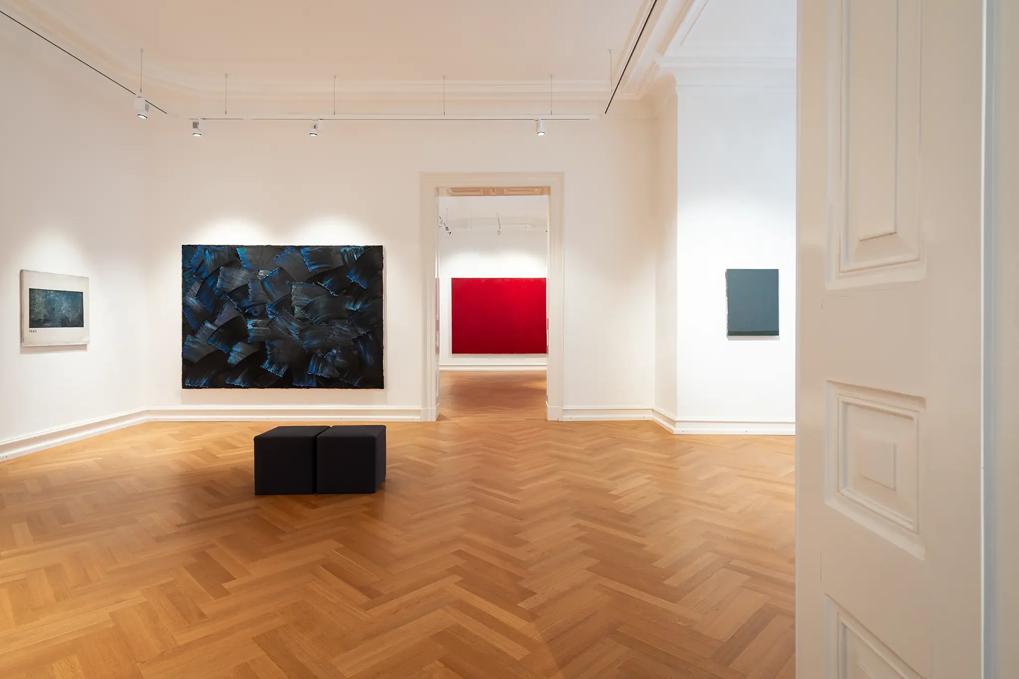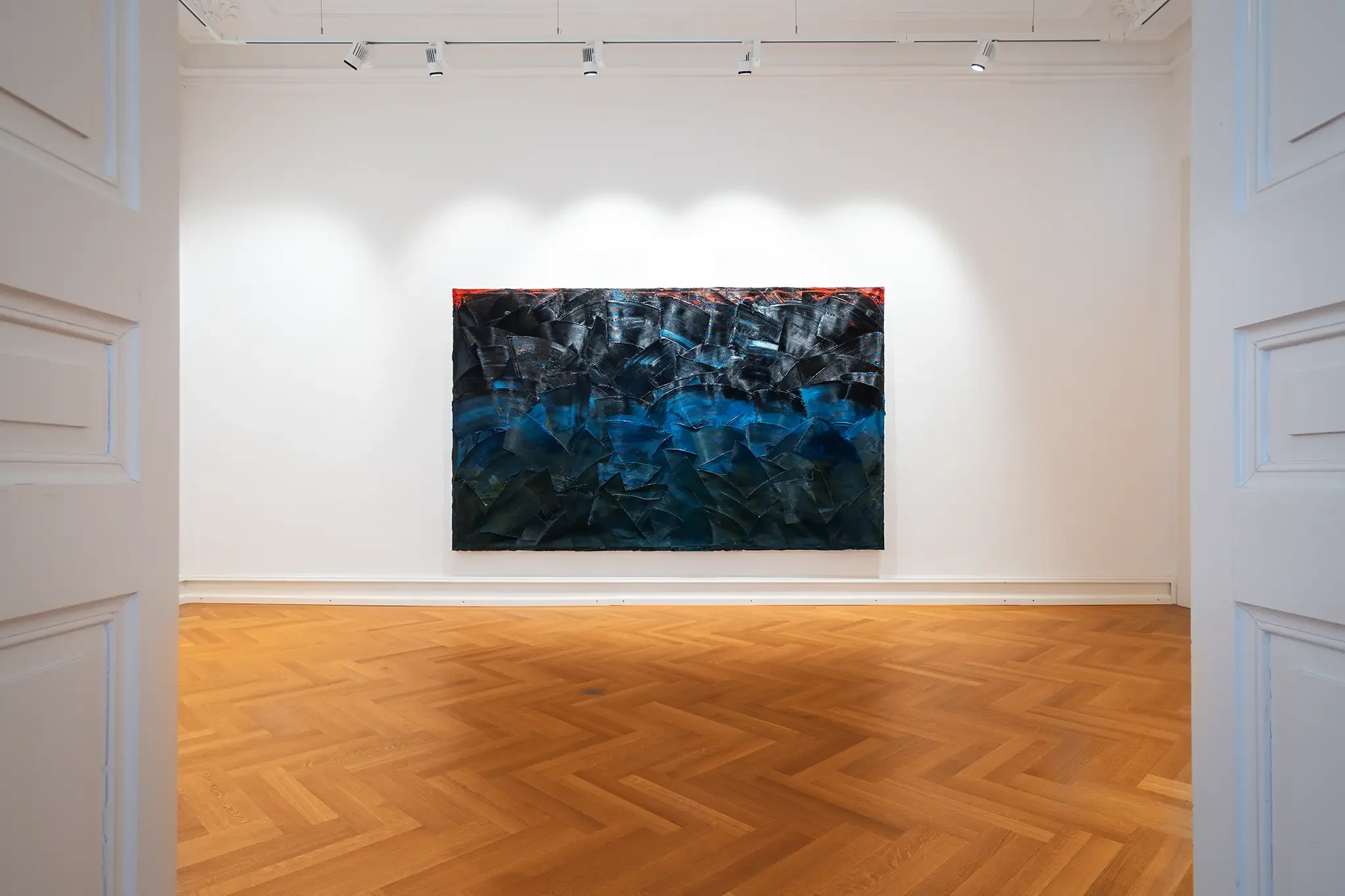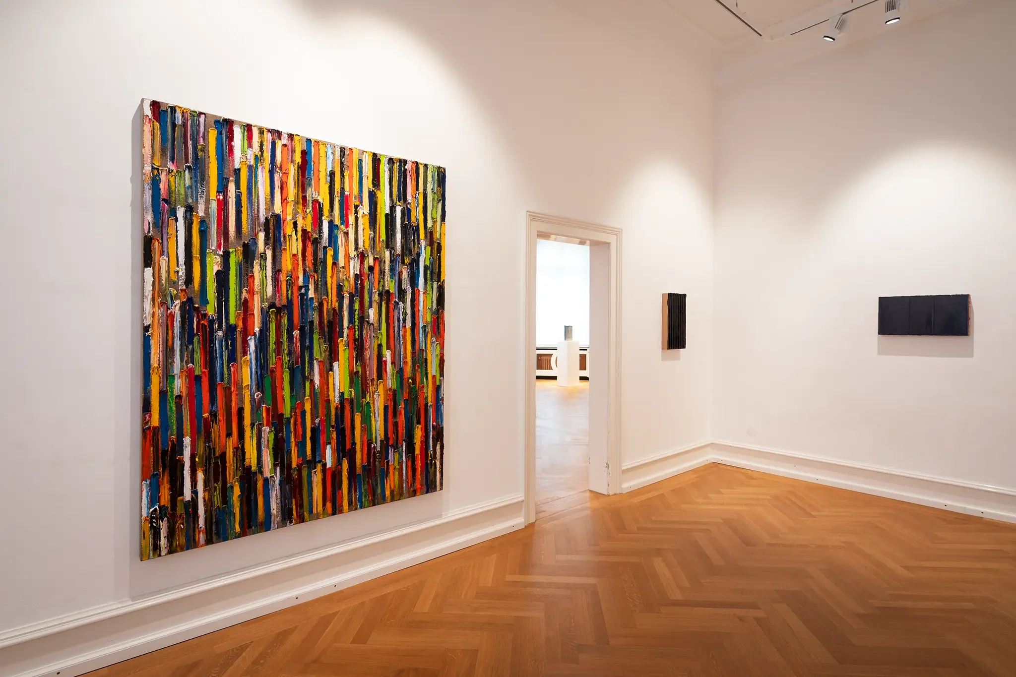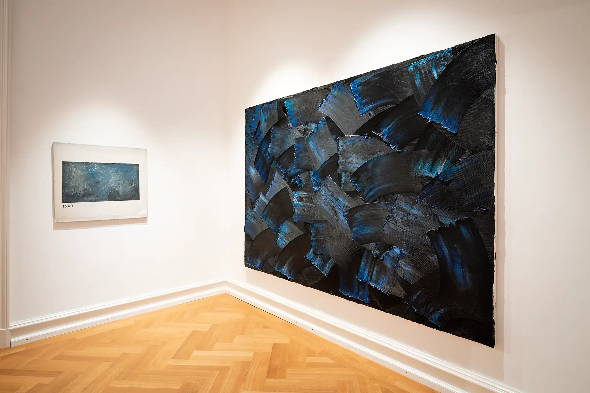 In der Villa Zanders waren vor allem großformatige Leinwände zu sehen, die Roses Entwicklung dokumentierten. Besonders eindrucksvoll waren Arbeiten, in denen er mit unterschiedlichen Malmitteln experimentierte und so die Grenzen der Malerei austestete.